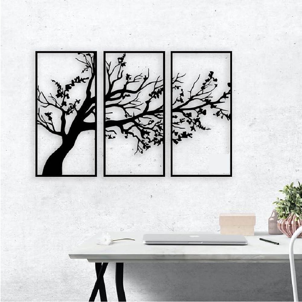 Make a striking modern statement with this set of Three Tree Wall Art panels. This collection features the elegant, simplified silhouettes of trees, laser-cut or crafted from wood and finished in a uniform, matte black. The all-black color scheme lends a contemporary, graphic edge that stands out powerfully against light walls.