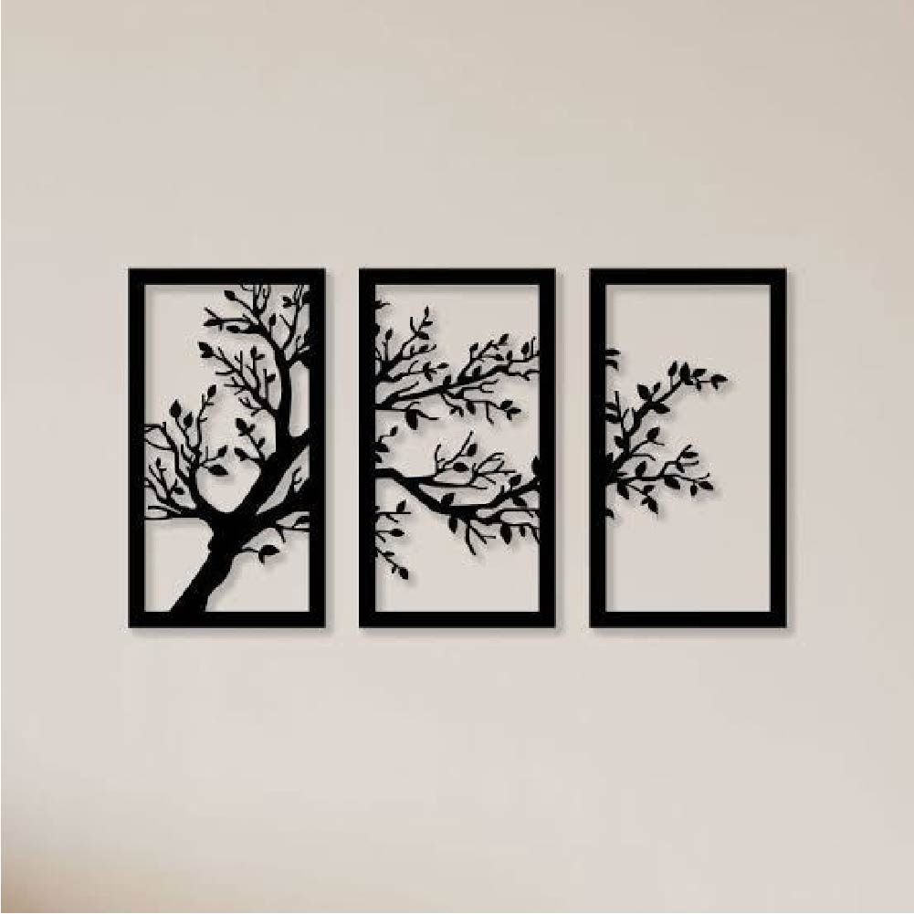 3 Tree Wall Art – Black Wooden Silhouette Panels (8″x16″ each)