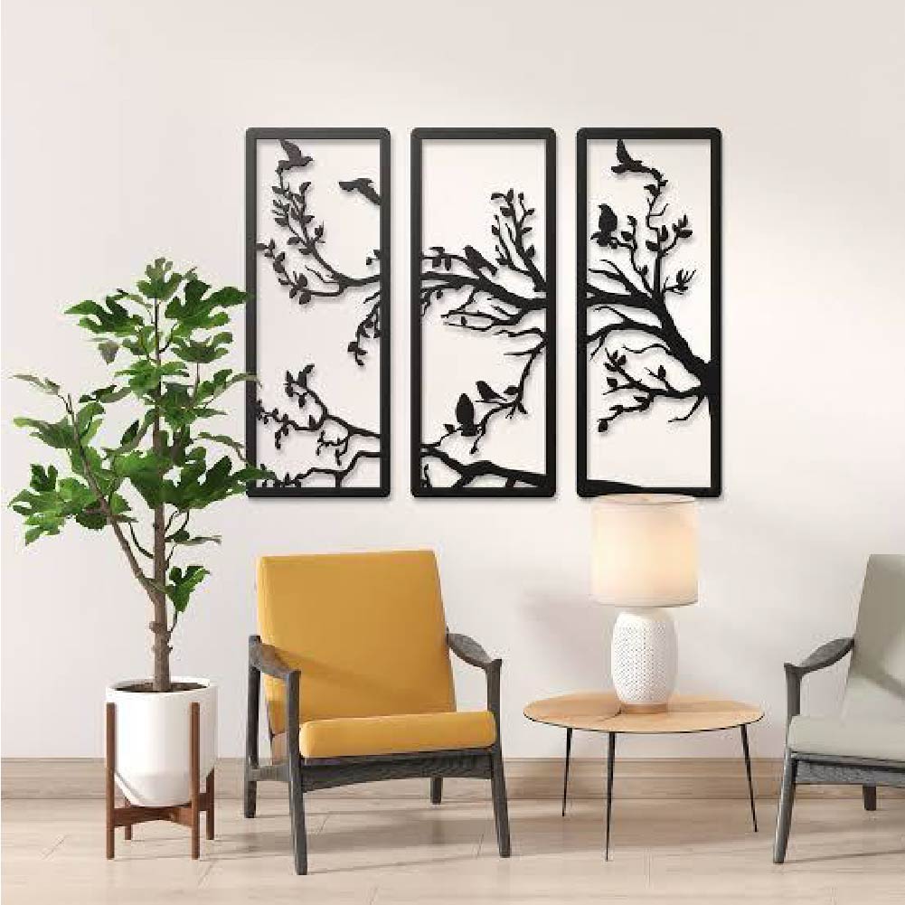 Modern Tree Silhouettes: Three distinct, minimalist tree designs in a sleek all-black finish.