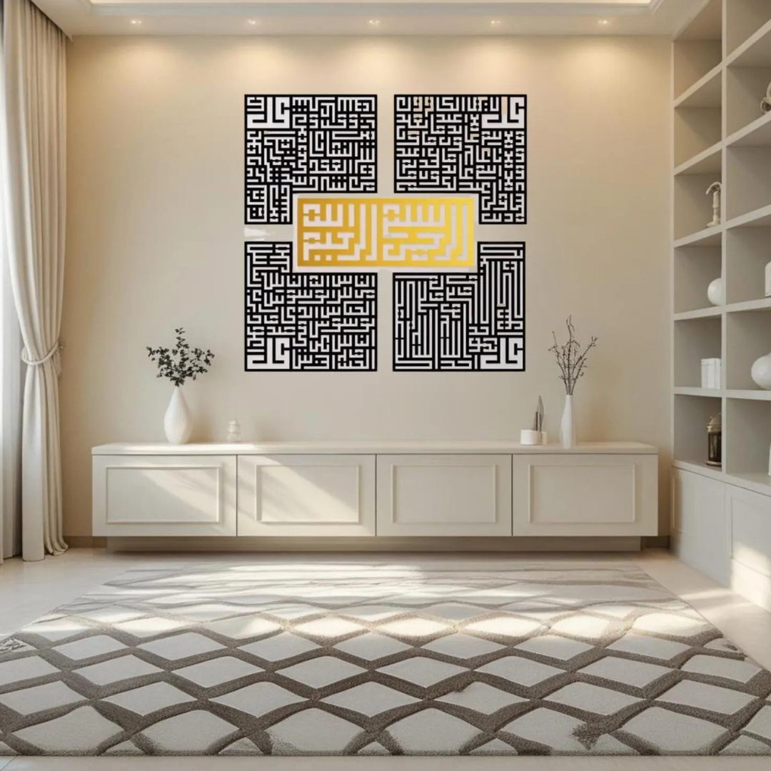 Bring the profound spiritual protection of the Four Quls (Surah Al-Kafirun, Al-Ikhlas, Al-Falaq, An-Nas) into your home or office with this exquisite wall art. More than just decor, it is a constant reminder of faith, a source of barakah, and a statement of Islamic identity.