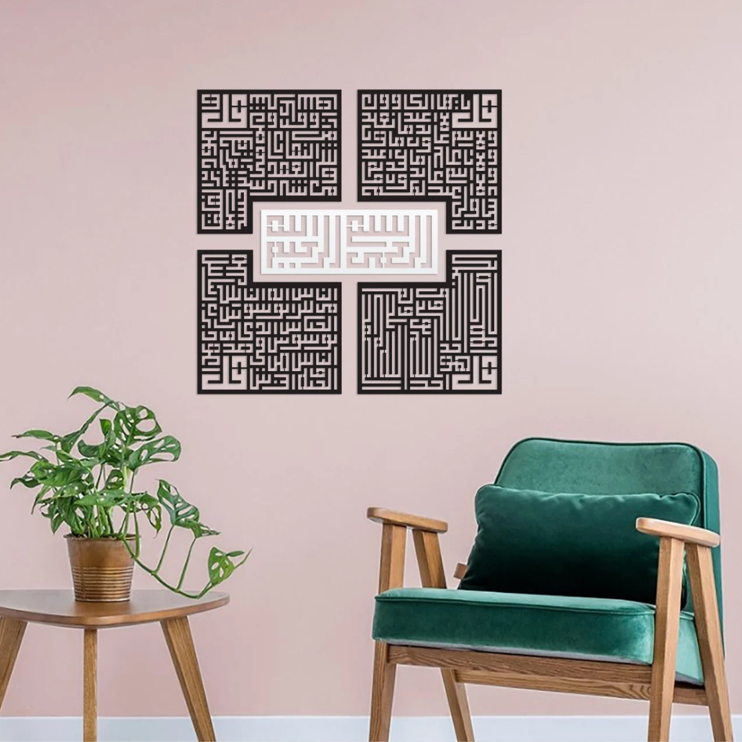 4 Quls Islamic Wall Art – MDF & Acrylic Calligraphy Decoration