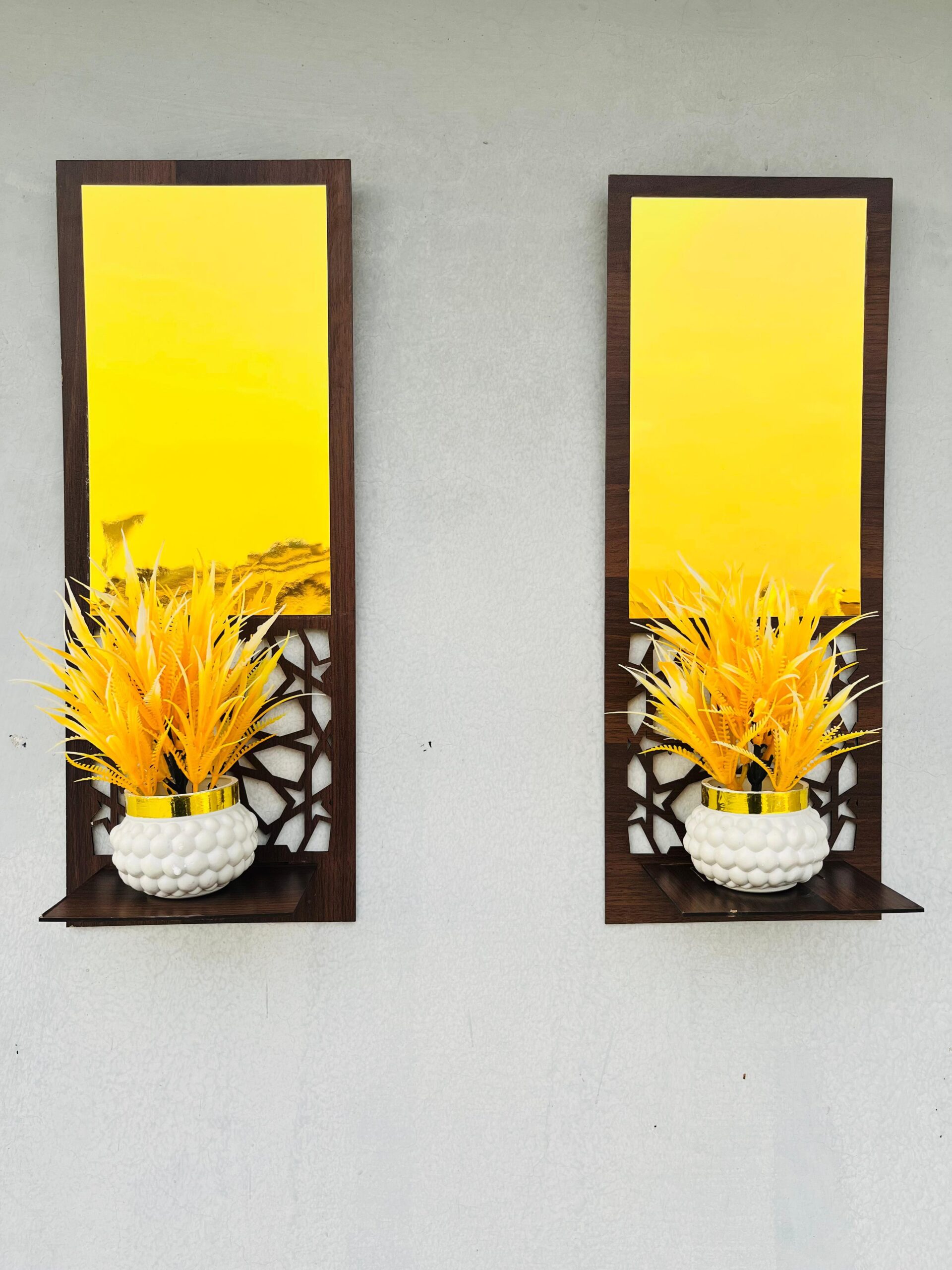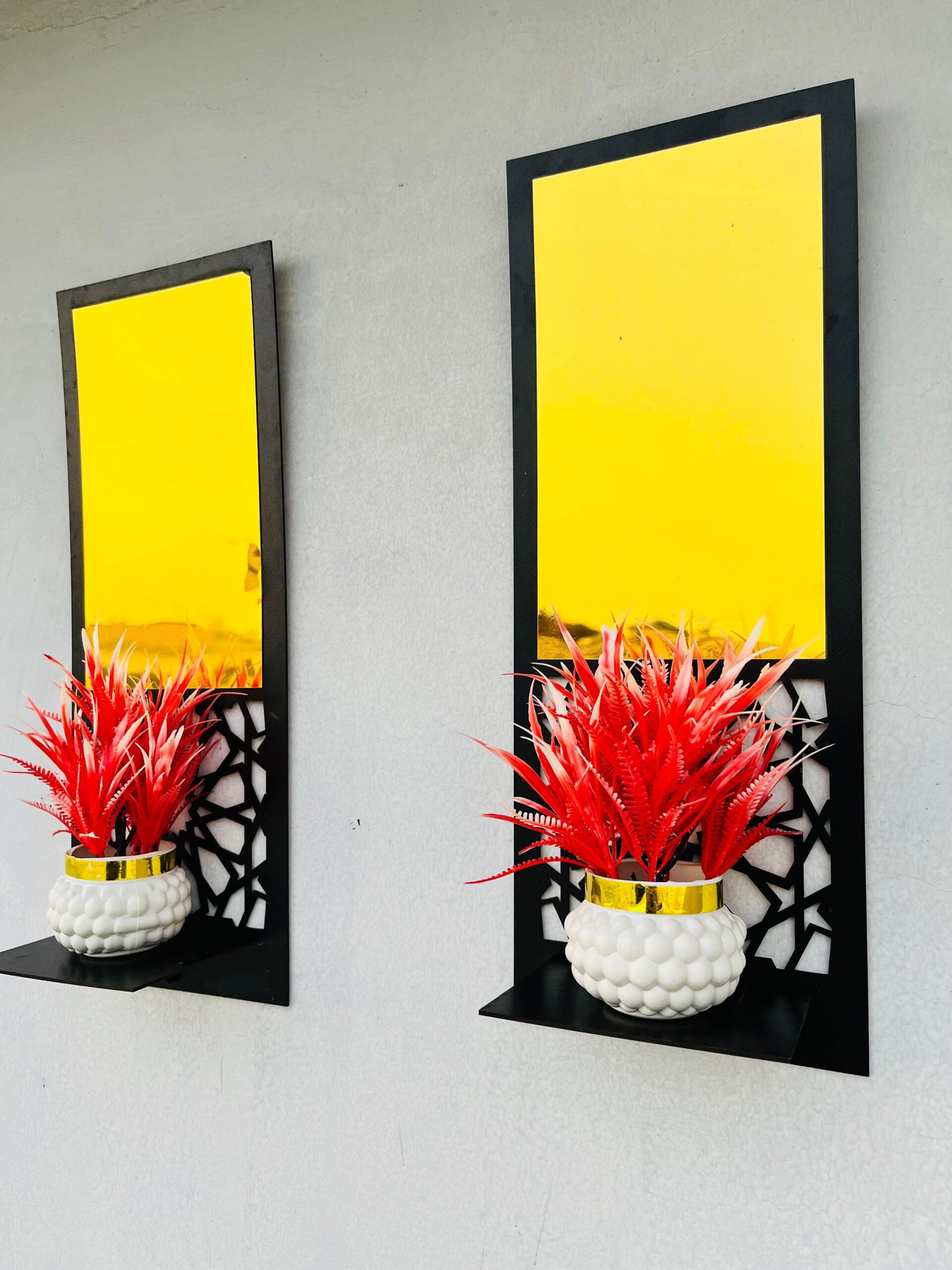 A set of two sleek acrylic mirror shelves, each measuring 6×14 inches. Functional and decorative, with a mirrored surface and a raised edge to securely display small decor items, perfumes, or succulents.