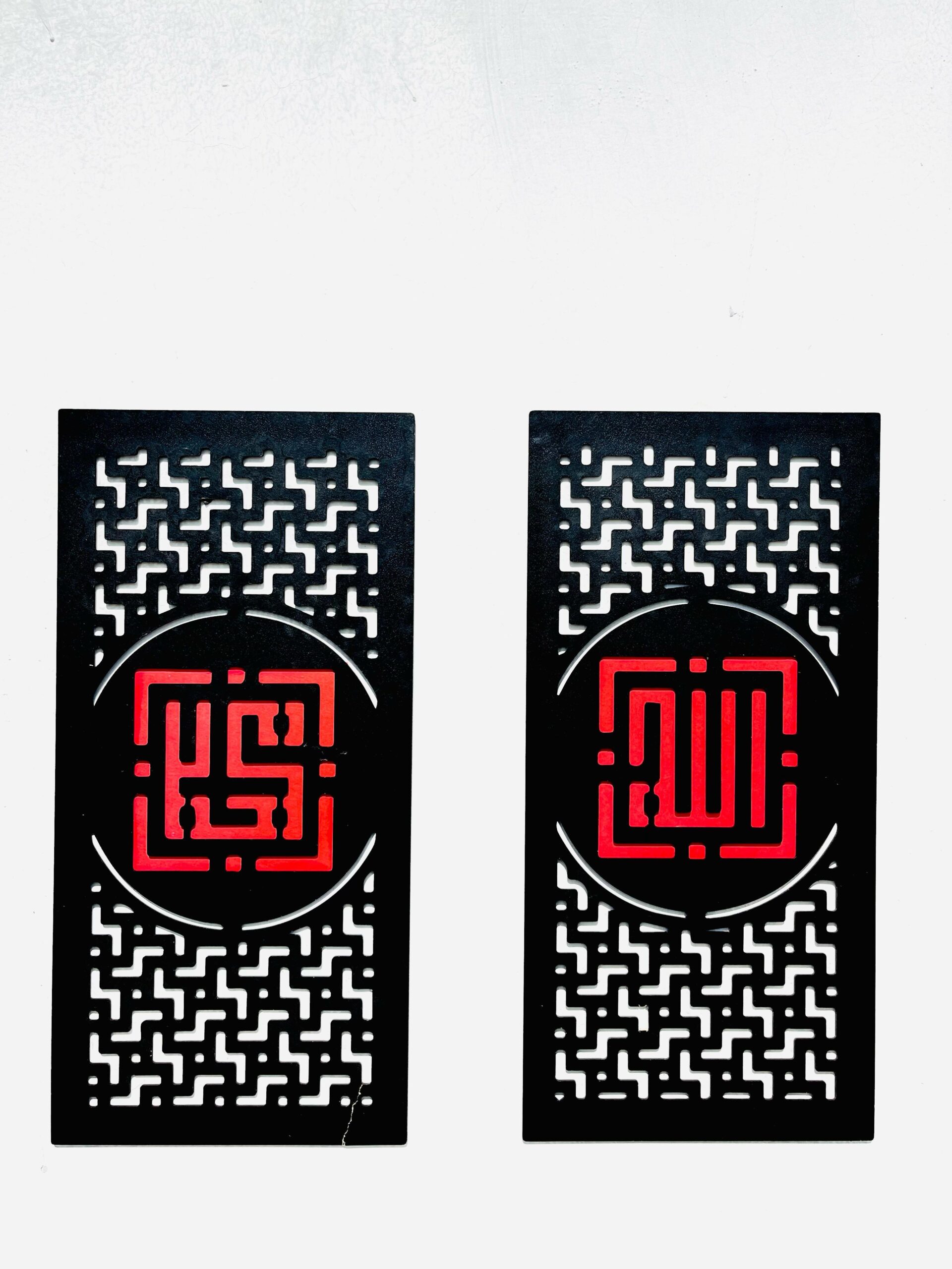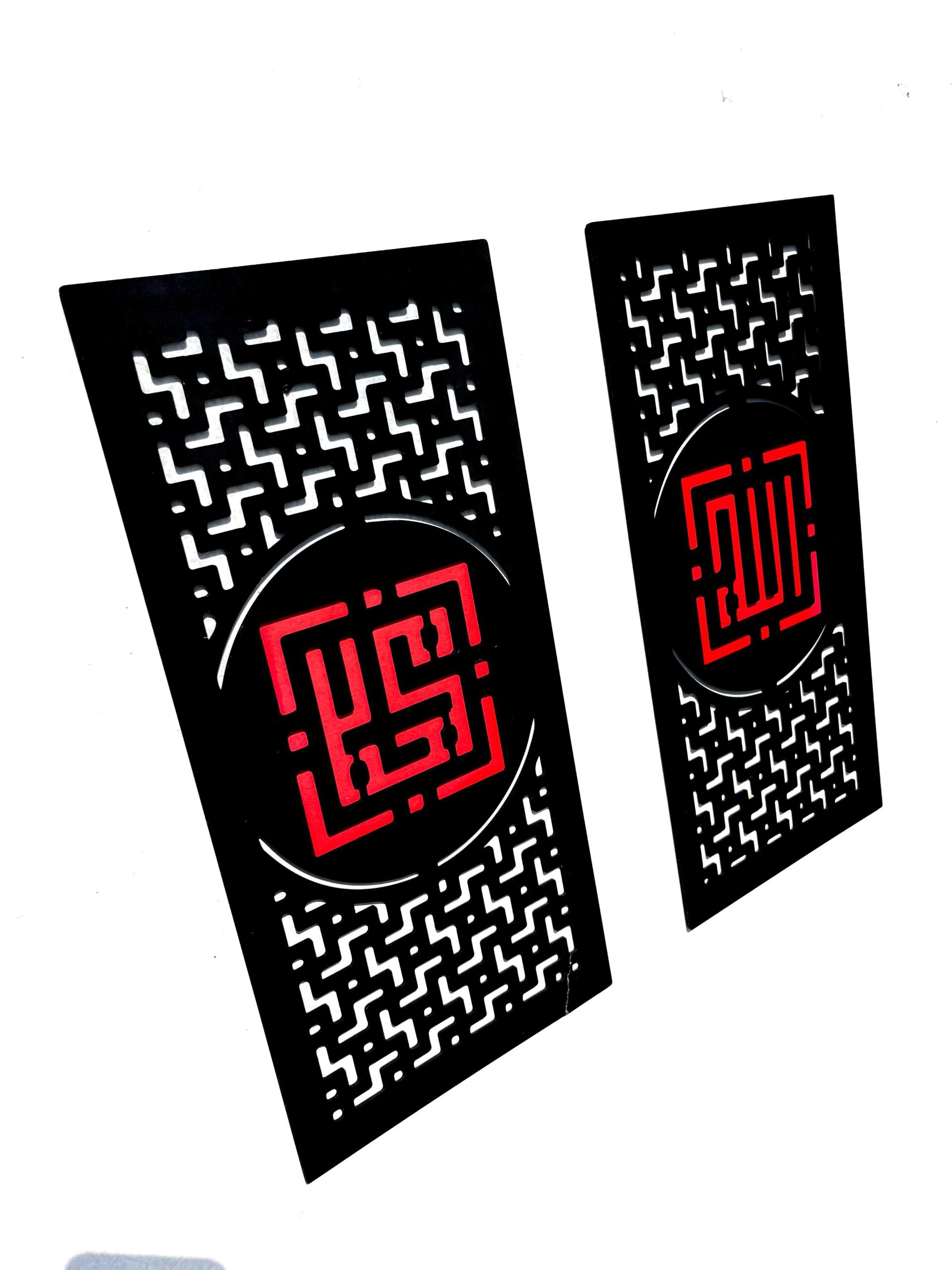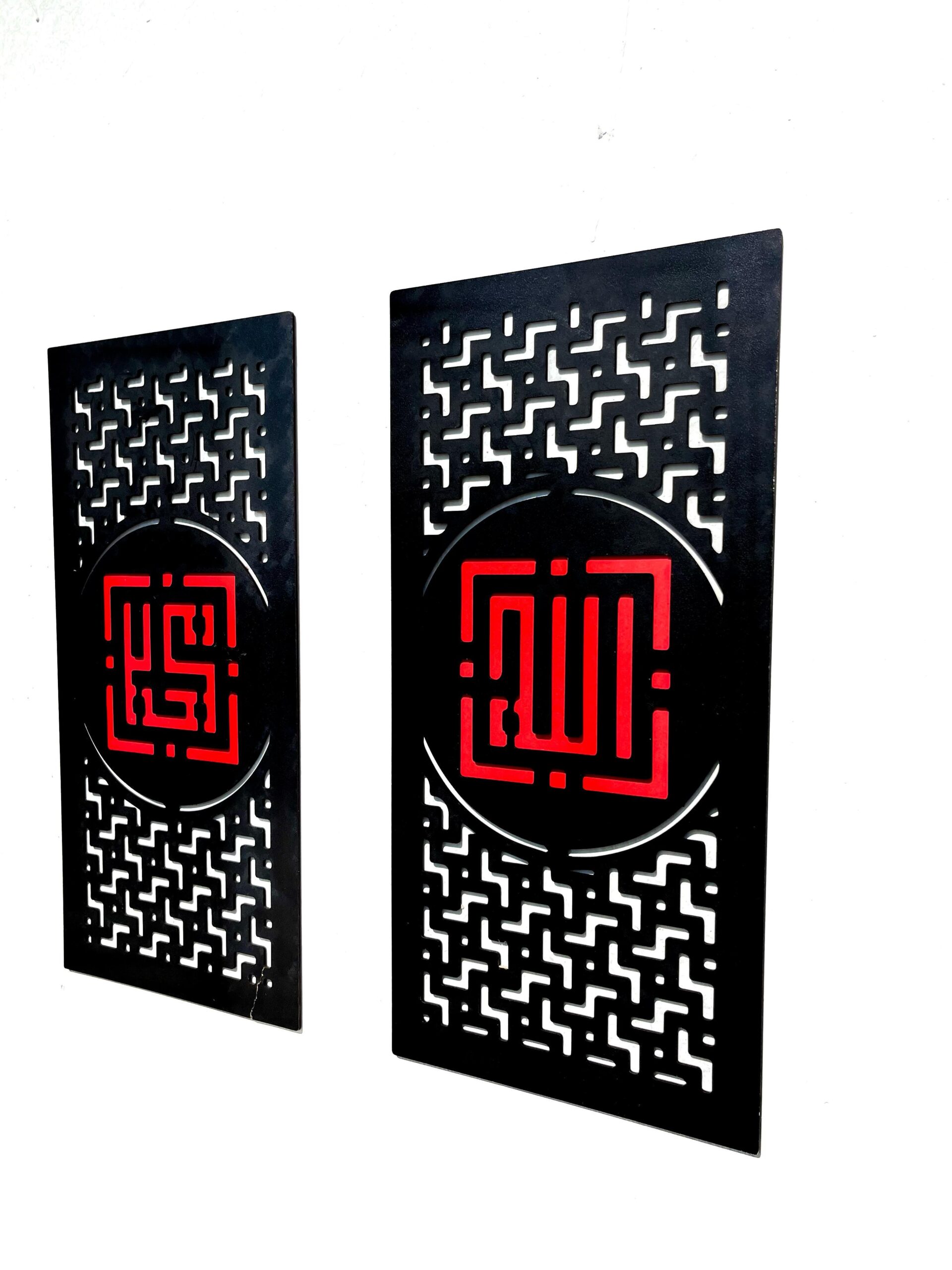 Allah Muhammad Red Black Frame – Islamic Calligraphy Wall Art (8″x16″)