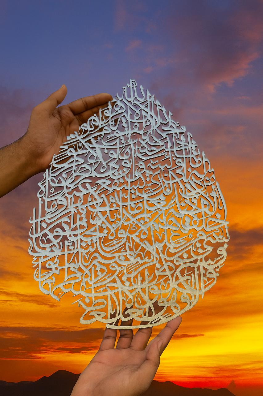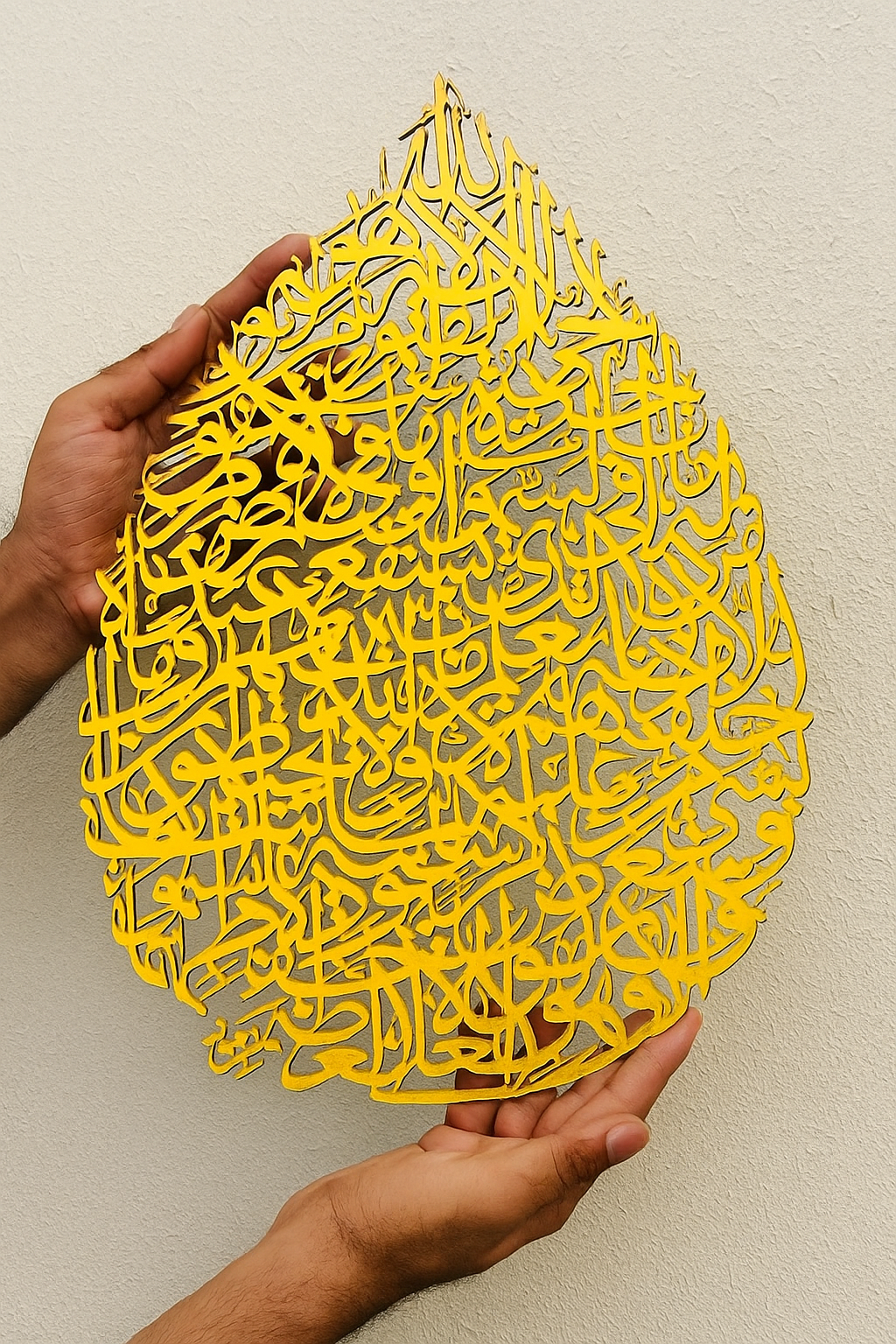 The oval design adds a soft, artistic touch to traditional Islamic calligraphy, making it a distinctive focal point for your living room, prayer area, bedroom, or entrance. It serves as both a spiritual shield and a statement of faith, beautifully merging devotion with contemporary Islamic artistry.