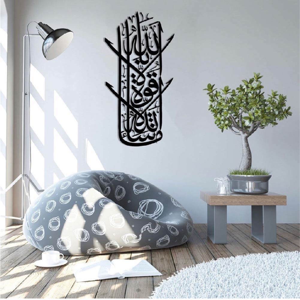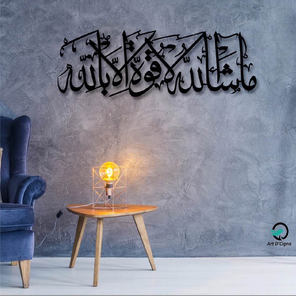 Strengthen your faith with this beautiful “Mashallah Laquwata” wall art. This piece features the powerful Islamic phrase “ما شاء الله لا قوة إلا بالله” (“What Allah wills, there is no power except with Allah”) in graceful Arabic calligraphy—a constant reminder of divine will and reliance on Allah’s strength.