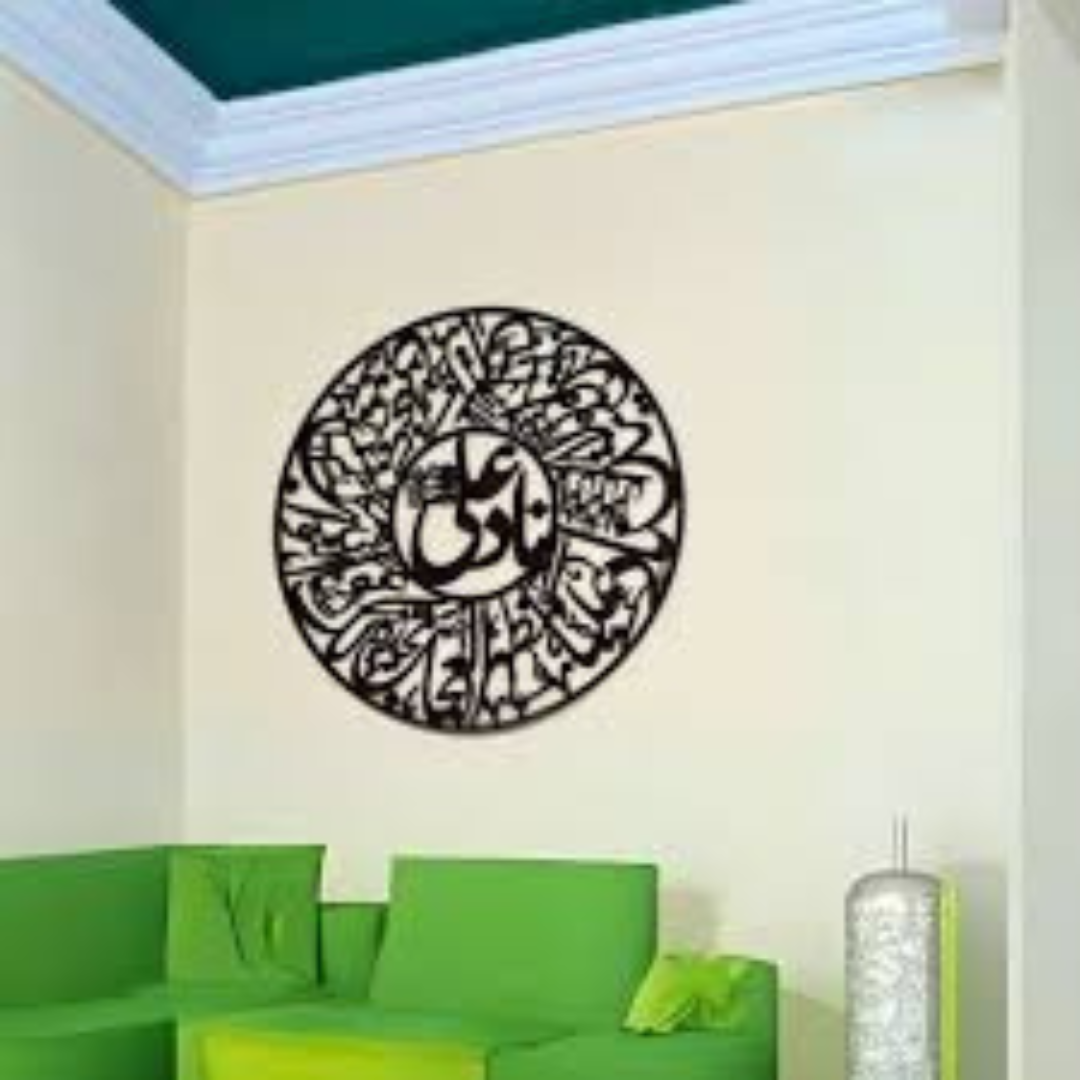 Invoke divine protection and spiritual strength with this beautifully crafted Nad e Ali wooden wall art. This revered Islamic invocation, calling upon Hazrat Ali (RA), is meticulously engraved in elegant Arabic calligraphy on a classic circular disk, symbolizing unity and eternal faith.