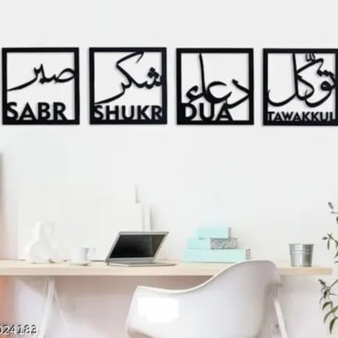 Hang them together in a symmetrical grid for a cohesive gallery wall, or place them individually in meaningful spots—like Sabr in your workspace, Shukr in the dining area, Dua near your prayer space, and Tawakkal in the living room. Their uniform size and color create a harmonious look that blends seamlessly with any interior style, from contemporary to classic.