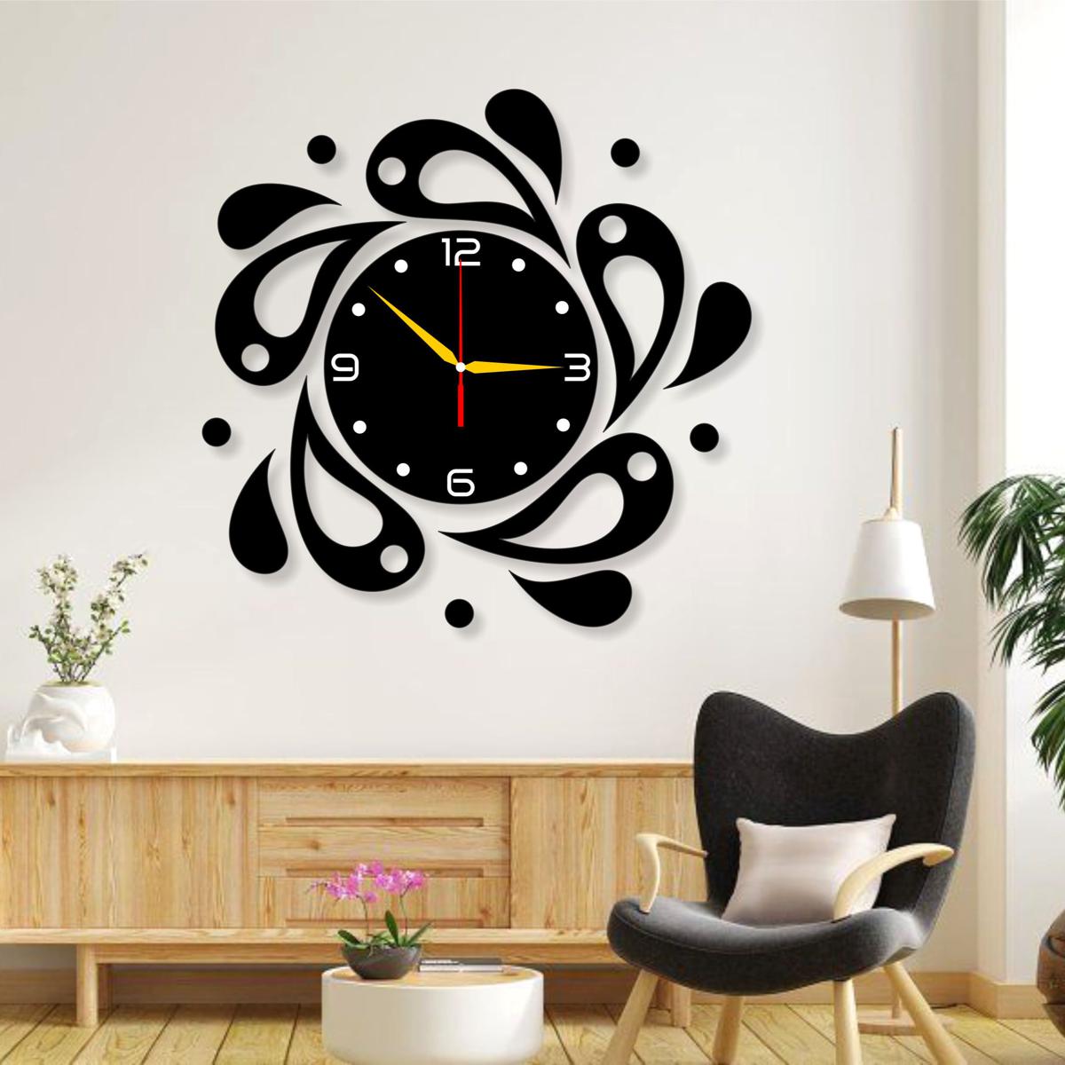 A unique WaterDrop-shaped wall clock with a contemporary design. Total size: 36×36 inches. A minimalist, modern timepiece resembling a water droplet.